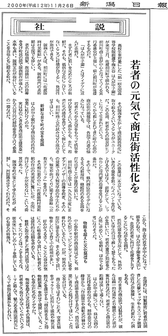 2.2000年11月26日の新潟日報の社説に書いてくれています。(実はこのアドバイザー役が私です。)