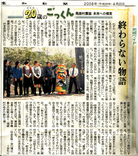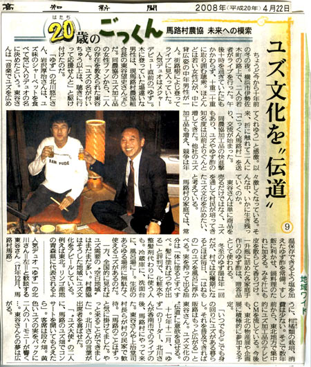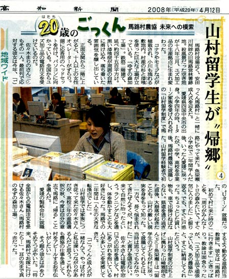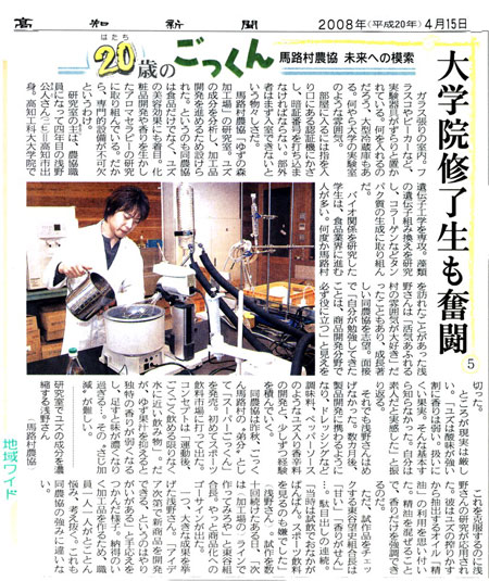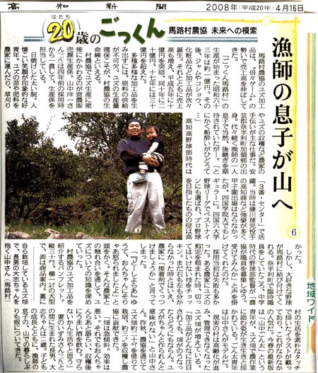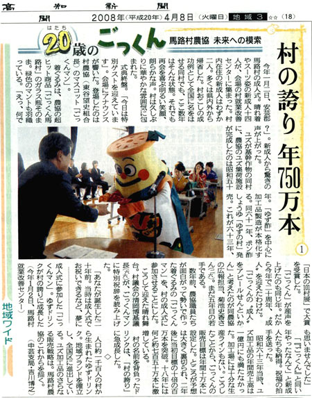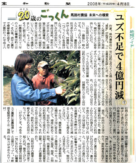 「20歳のごっくん」 馬路村農協 未来への模索 [高知新聞:2008年4月掲載]