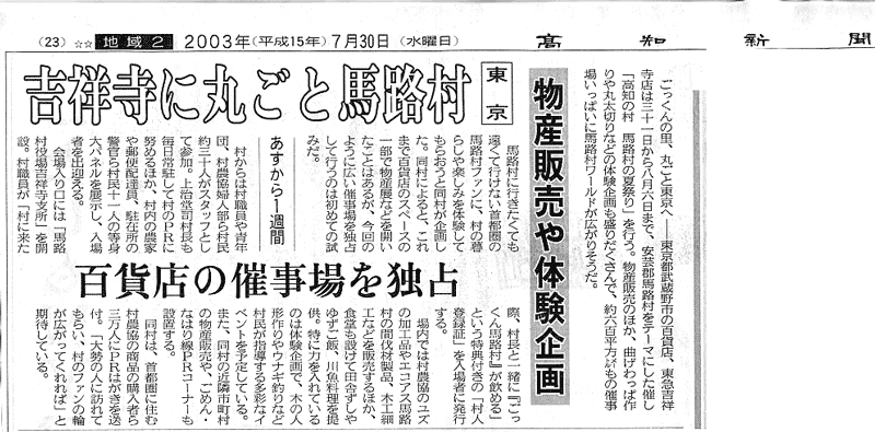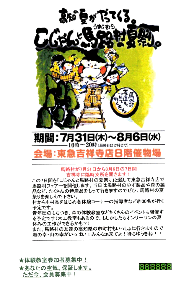 東急・吉祥寺店「こじゃんと馬路村の夏祭り。」(15.7.31〜15.8.6)