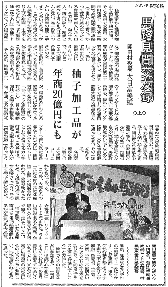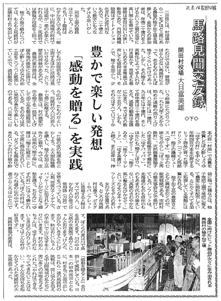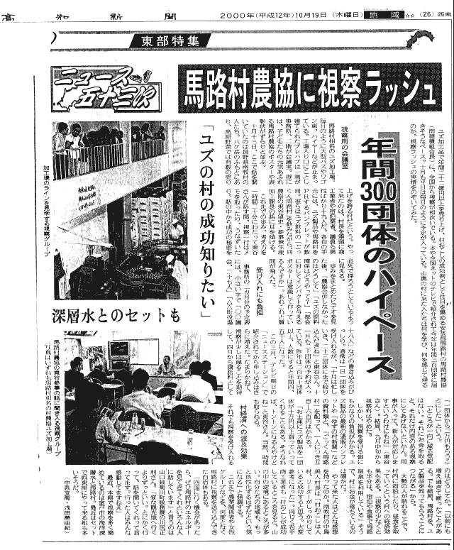 ゆず製品大ヒットさせた村の実践(神戸新聞平成11年2月7日)