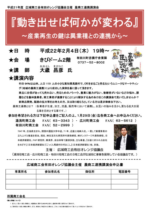広域商工会有田オレンジ協議会主催 農商工連携講演会