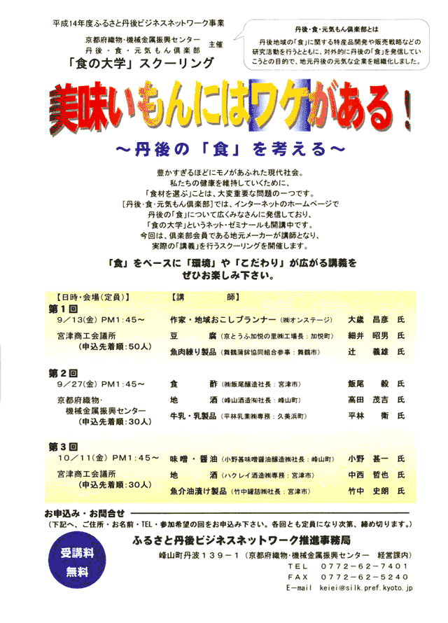 『美味いもんにはワケがある!〜丹後の「食」を考える〜』