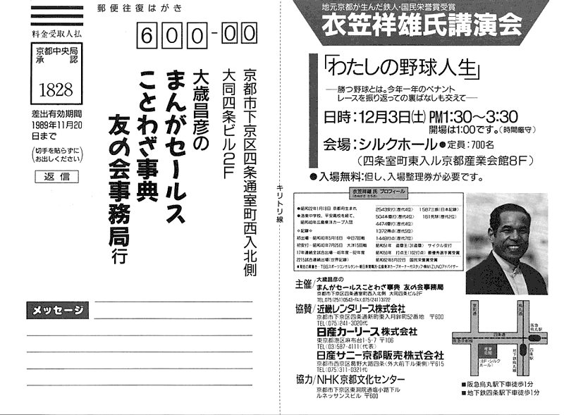 衣笠祥雄講演会 「わたしの野球人生」