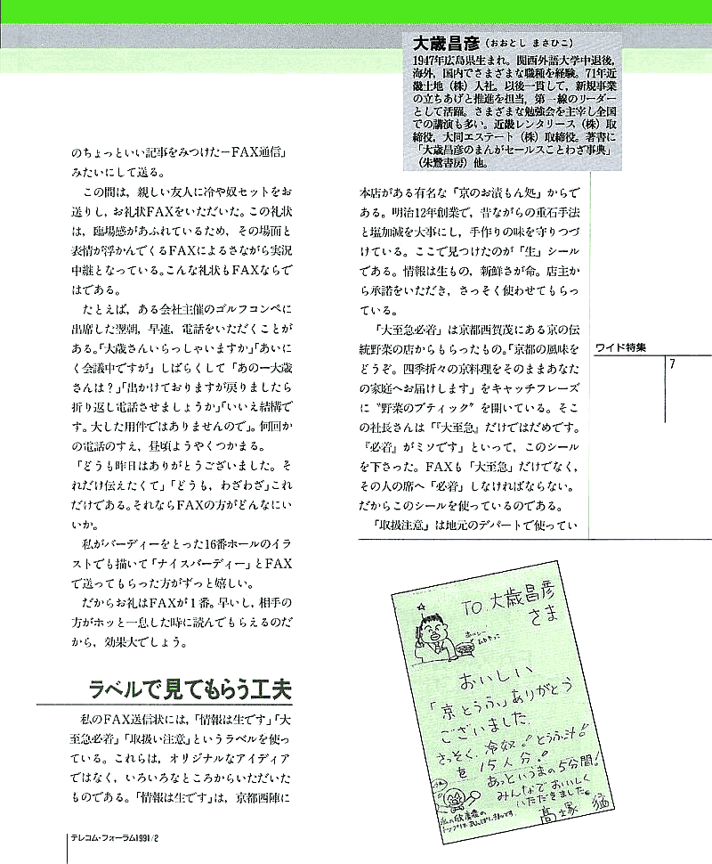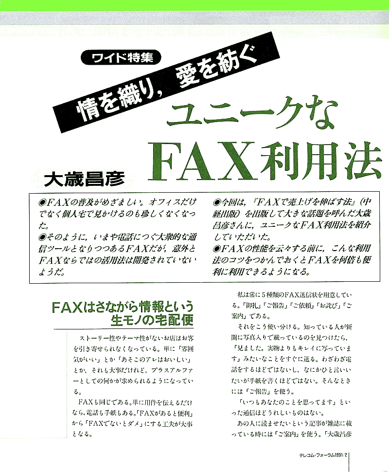 「ワイド特集 大歳昌彦のユニークなFAX利用法」