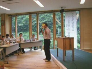 「馬路村立大学」とは、都会でよくあるいわば「市民大学」のことです。馬路村の場合は馬路村ファンにより自然発生的に発足しました。元々は「『ごっくん馬路村』の村おこし」読者の交流会がきっかけです。「せっかくだから、馬路村で年に何回か集まりたいですね」と年に数回、講演会や交流会を馬路村で開催することにしました。講演の講師に呼んだ人が村立大学の教授というわけです。教授の報酬・講演料は馬路温泉一泊招待と「気が向いた時、馬路村の特産品を贈ります」だけ。それでも「馬路村なら喜んで行くよ!」と来ていただいています。今後も「馬路村立大学」では、作家・音楽家・学者・企業経営者など、各方面でご活躍の「馬路村ファン」に来村いただき、講演会や交流会を開催していきます。